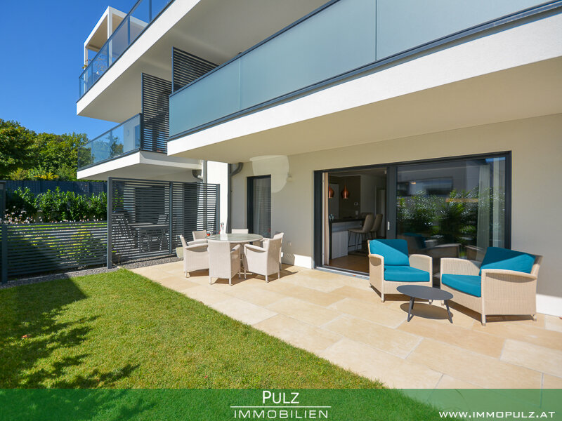 Die hochmoderne Ausstattung dieser Luxuswohnung lässt keine Wünsche offen. Genießen Sie den Weitblick von ihrer Terasse auf ihren eigenen, großflächigen Garten mit Pool.