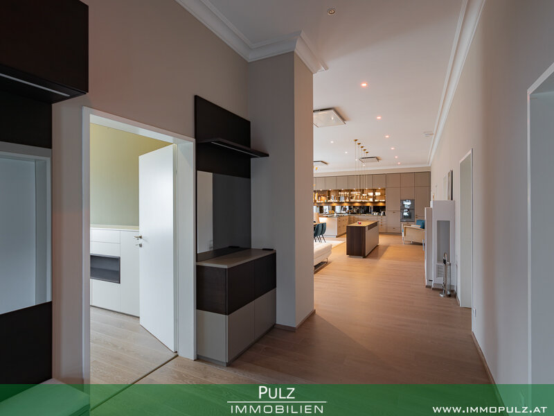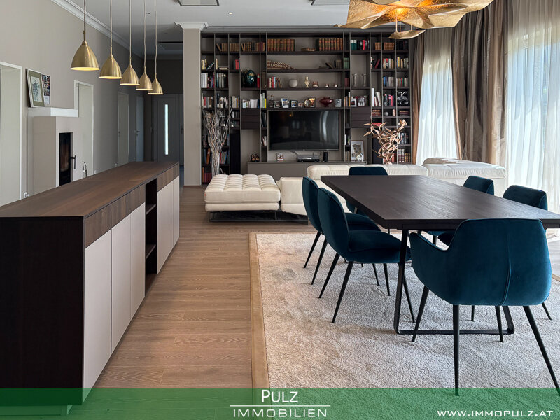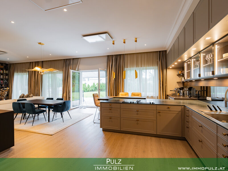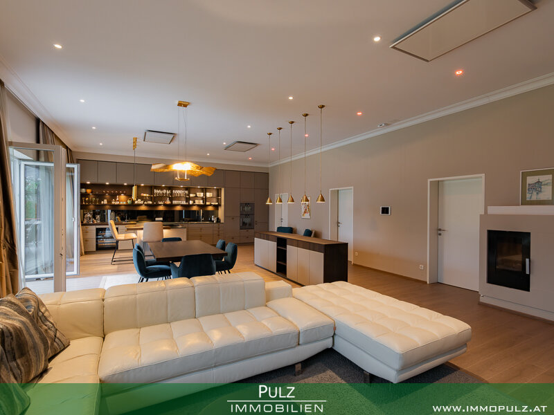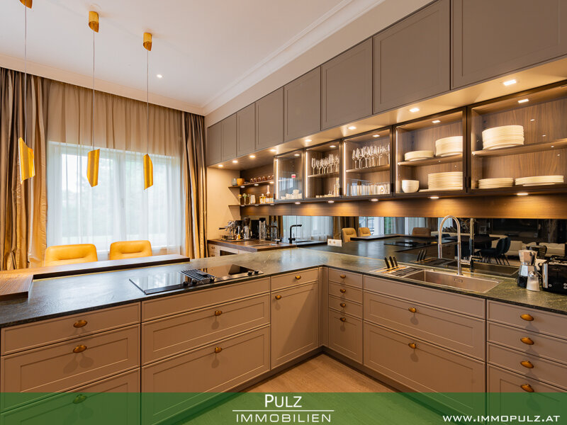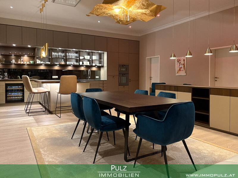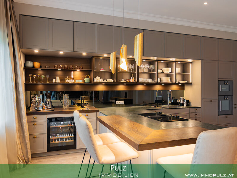 Besonders hervorzuheben ist die 2020 stattgefundene Innenraumrenovierung, die exklusiv gestaltete und mit allen Raffinessen ausgeführte LEICHT-Küche mit hochwertigen Gaggenau-Geräten, die das Herzstück des großzügigen, offenen Wohnraumes darstellt.
